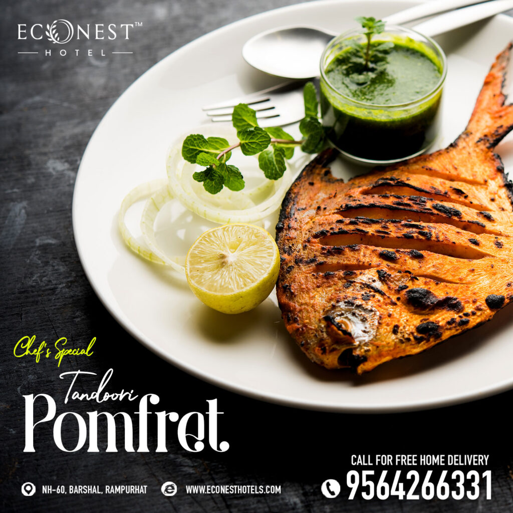 This dish features fresh pomfret fish marinated in a spicy blend of Indian spices and roasted to perfection in a traditional tandoor oven. The result is a juicy and flavorful fish that is perfect for any seafood lover.